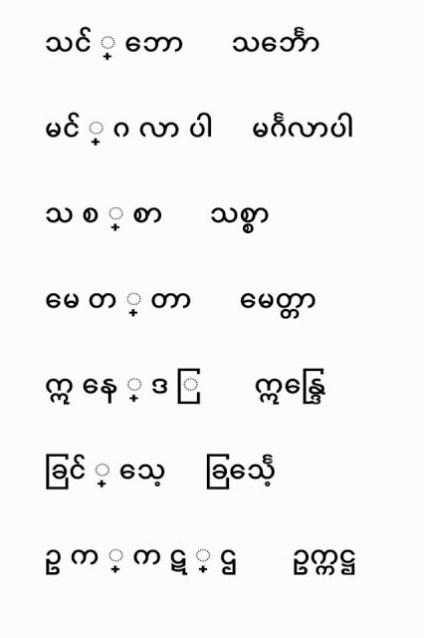 | ကျောင်း | = ကျ + ေ + ာ + င် + း |